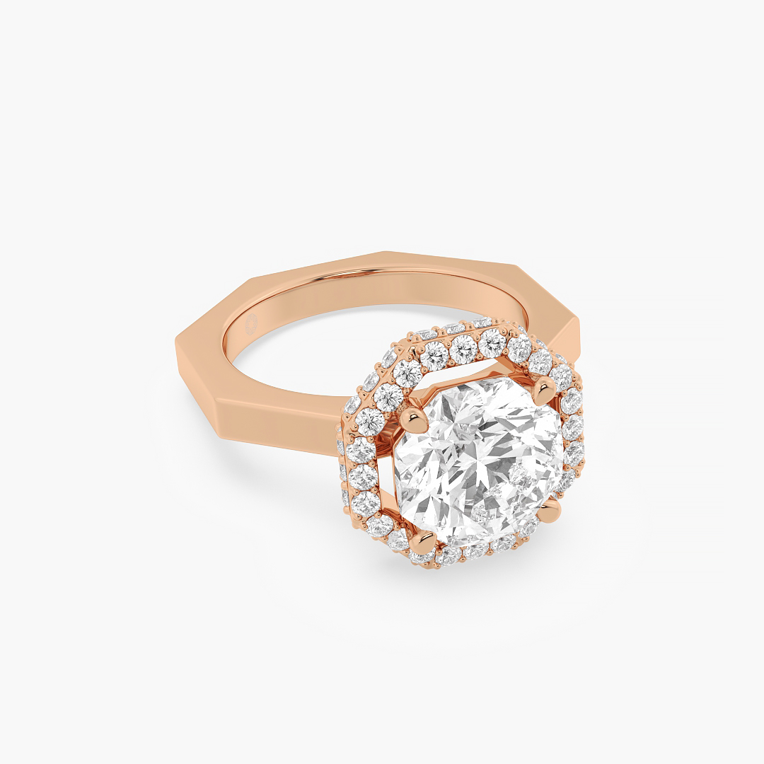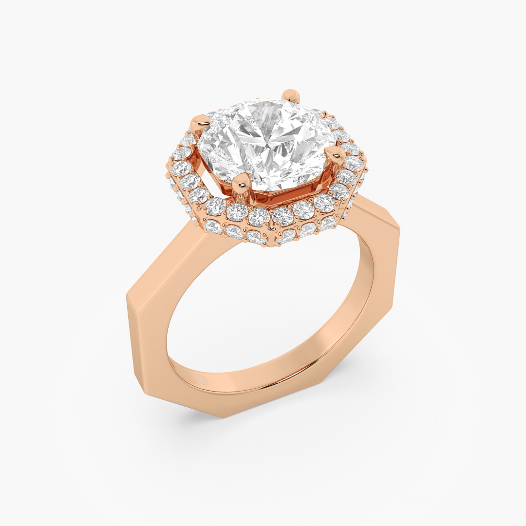 2.60 ctw (49 pcs) F VS1 Exclusive Lab Grown Ashth Cut Solitaire Diamond Engagement and Wedding Ring with Halo in 14k Rose Gold