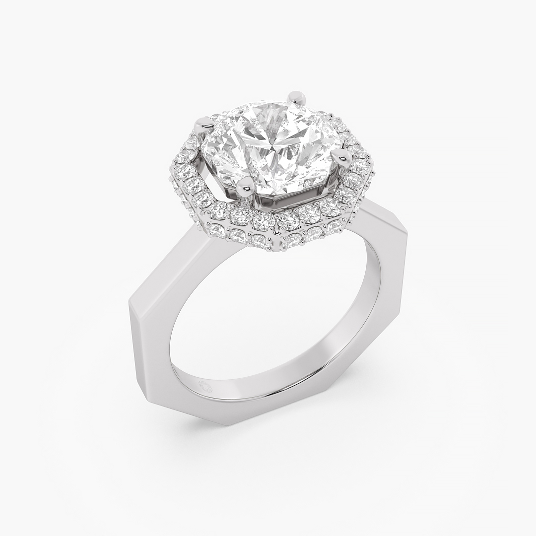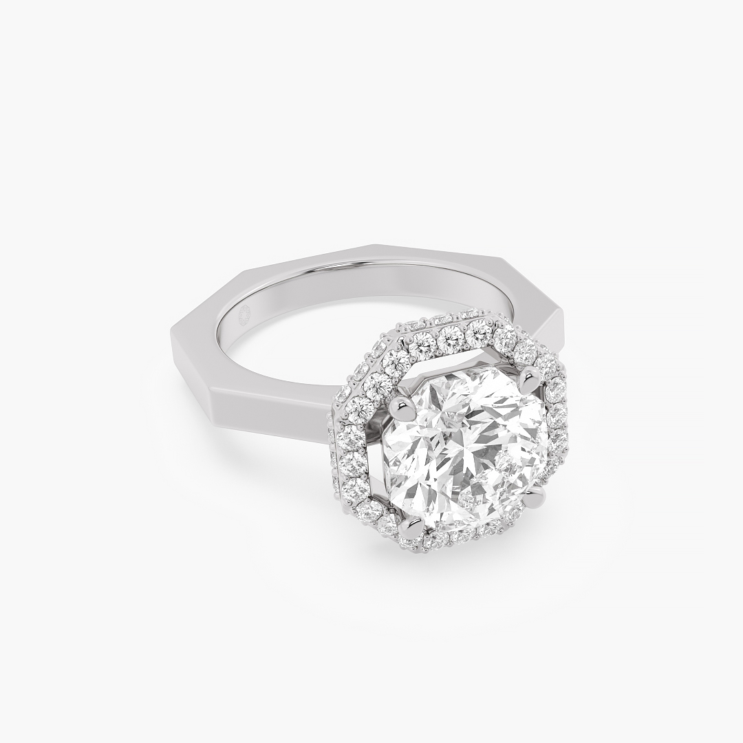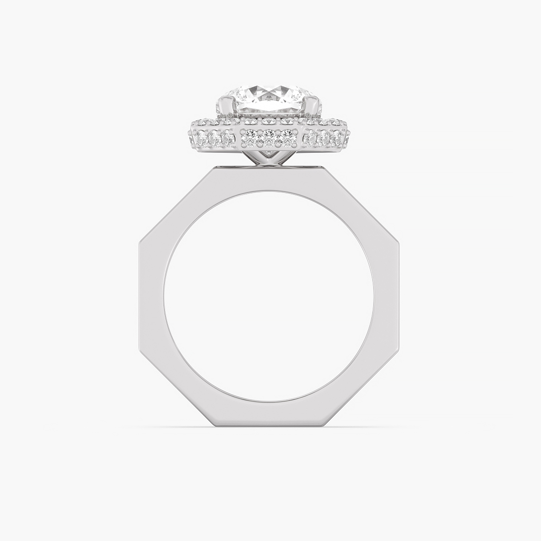 2.60 ctw (49 pcs) F VS1 Exclusive Lab Grown Ashth Cut Solitaire Diamond Engagement and Wedding Ring with Halo in 14k White Gold