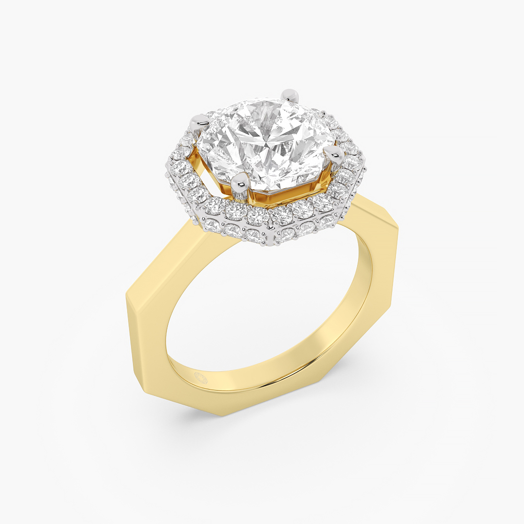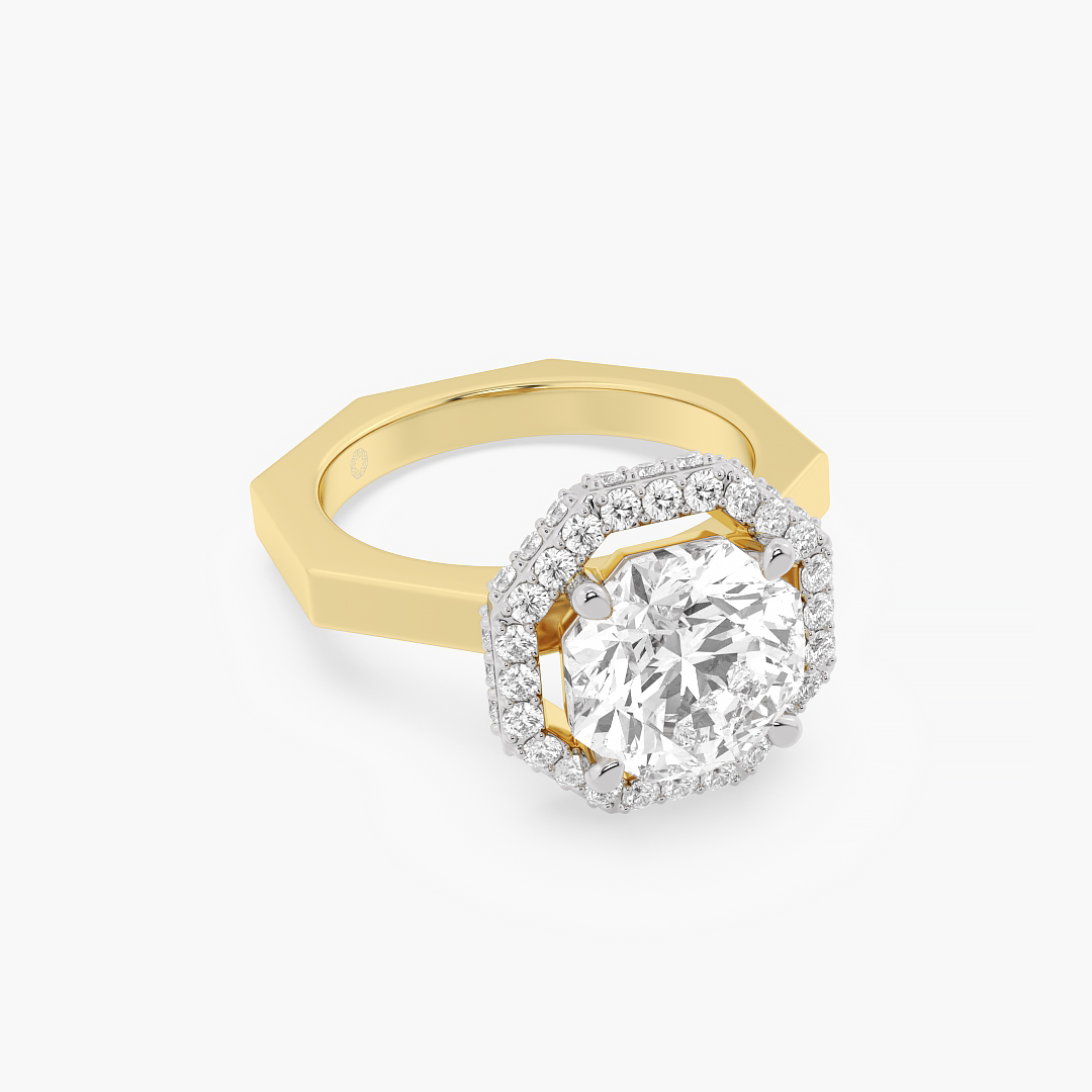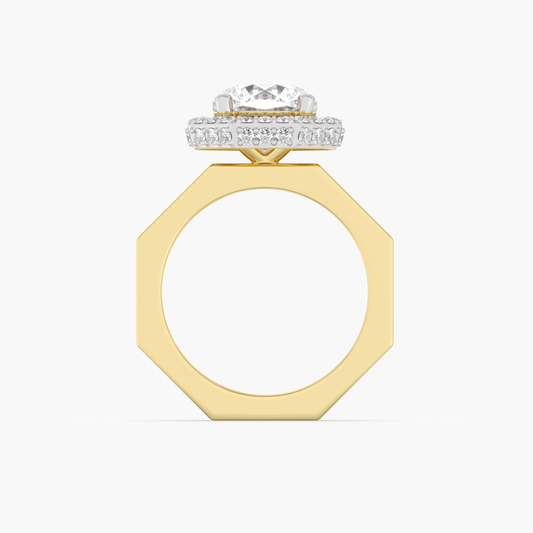 2.60 ctw (49 pcs) F VS1 Exclusive Lab Grown Ashth Cut Solitaire Diamond Engagement and Wedding Ring with Halo in 14k Yellow Gold