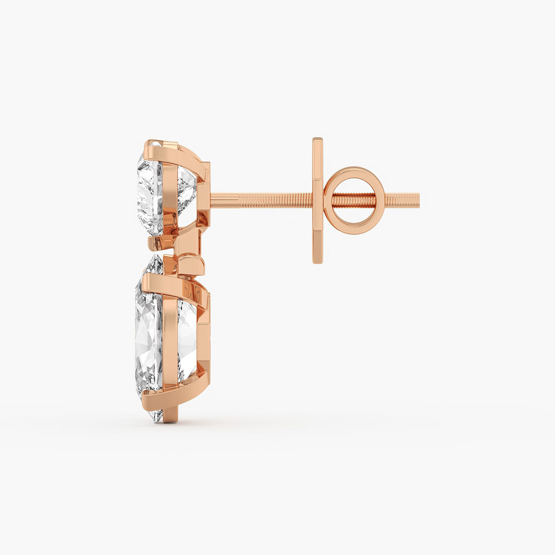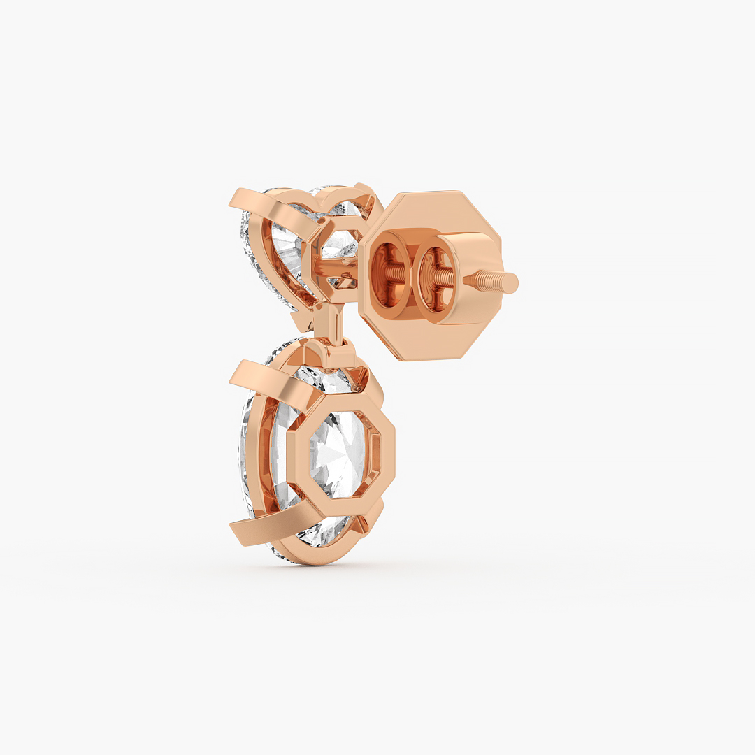 7.35 ctw (4 pcs) F VS1 Fancy Lab Grown Heart and Oval Cut Diamond Drop Earrings in 18k Rose Gold