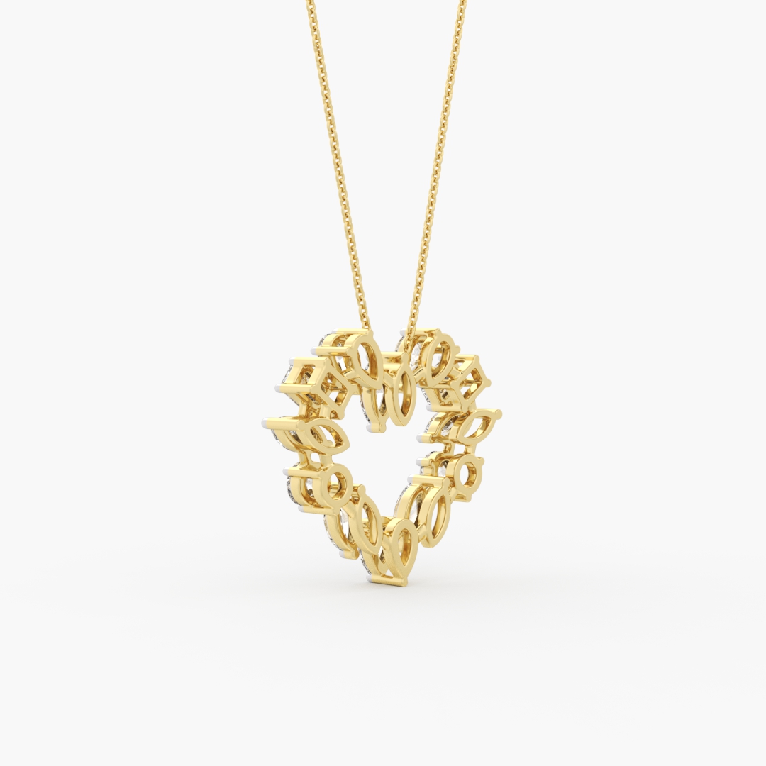 1.10 ctw (12 pcs) F VS1 Heart-Shaped Pear Marquise Emerald and Round Cut Lab Grown Diamond Pendant in 14k Yellow Gold (Chain Not Included)