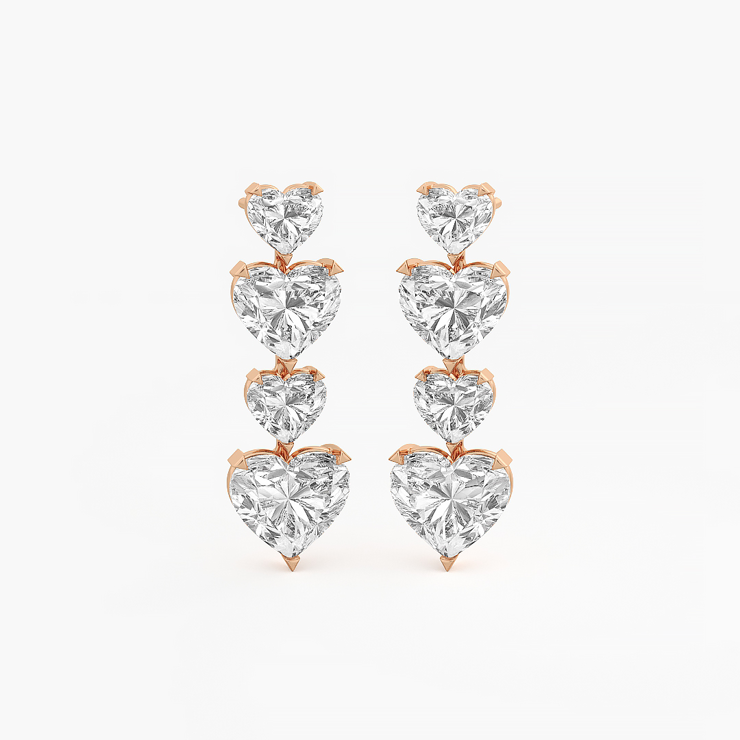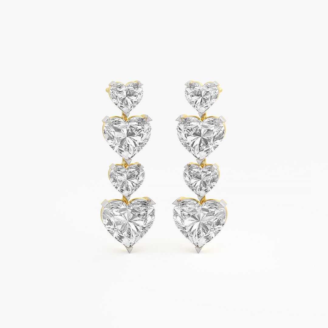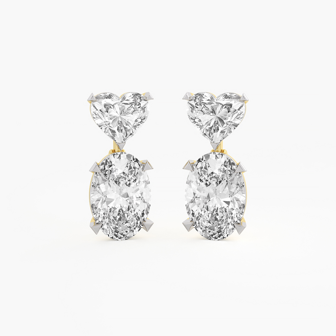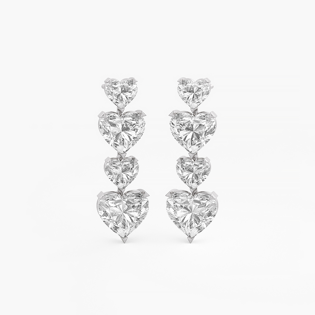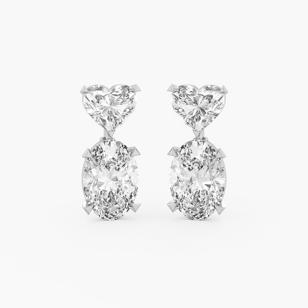 9.75 ctw (8 pcs) F VS1 Lab Grown Heart and Oval Cut Diamond Long Cocktail Earrings in 18k White Gold