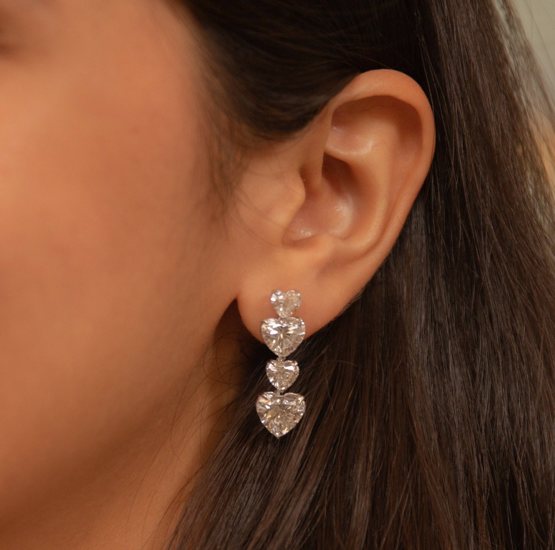 13.85 ctw (8 pcs) F VS1 Lab Grown Heart Cut Diamond Long Cocktail Earrings in 14k White Gold