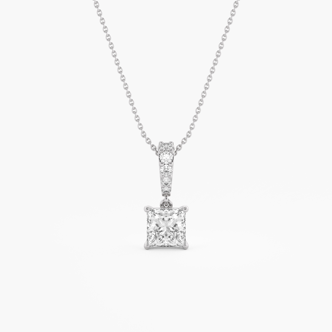 1.50 ctw (2 pcs) F VS1 Lab Grown Pear and Oval Cut Diamond Fancy Cluster Pendant in 18k White Gold (Chain included)
