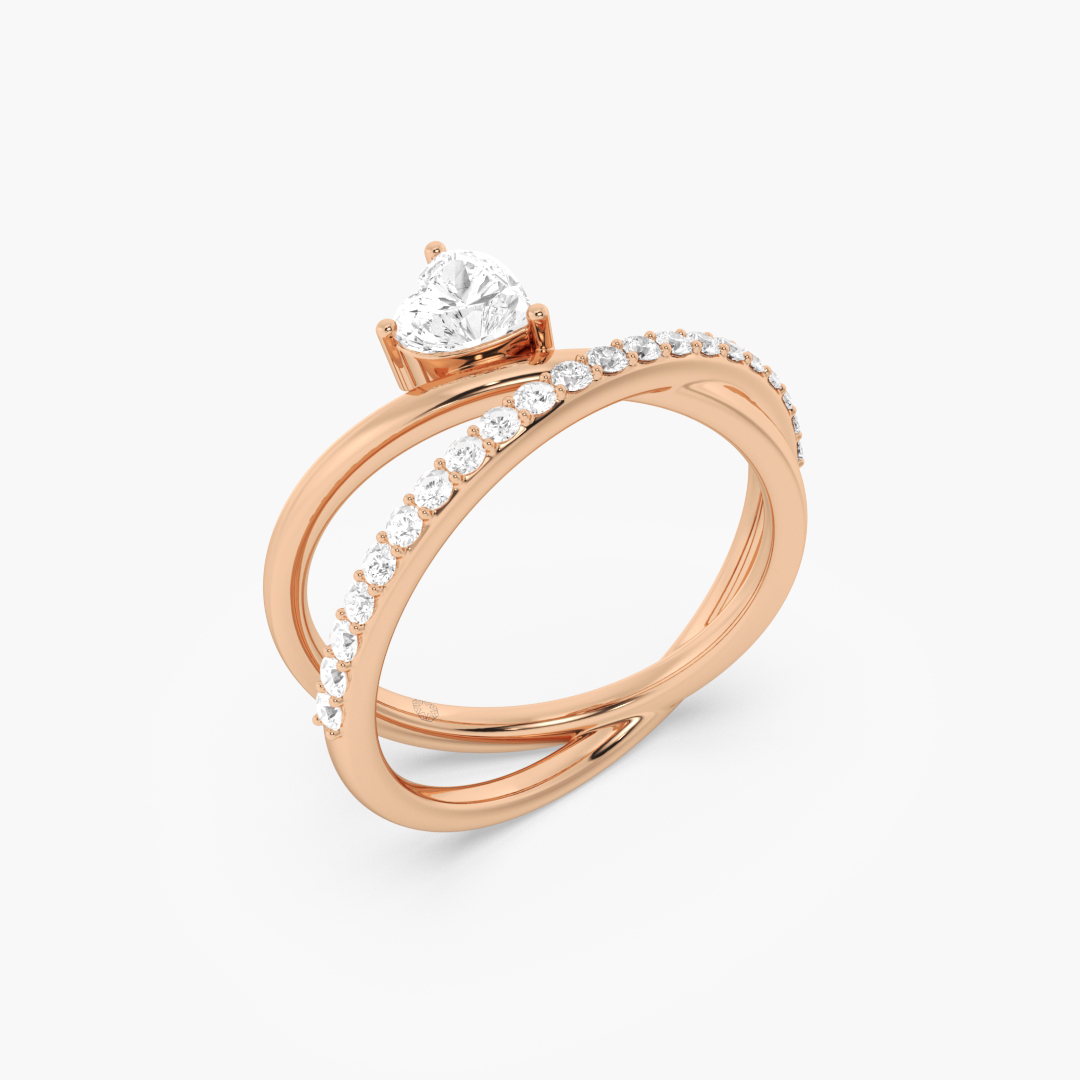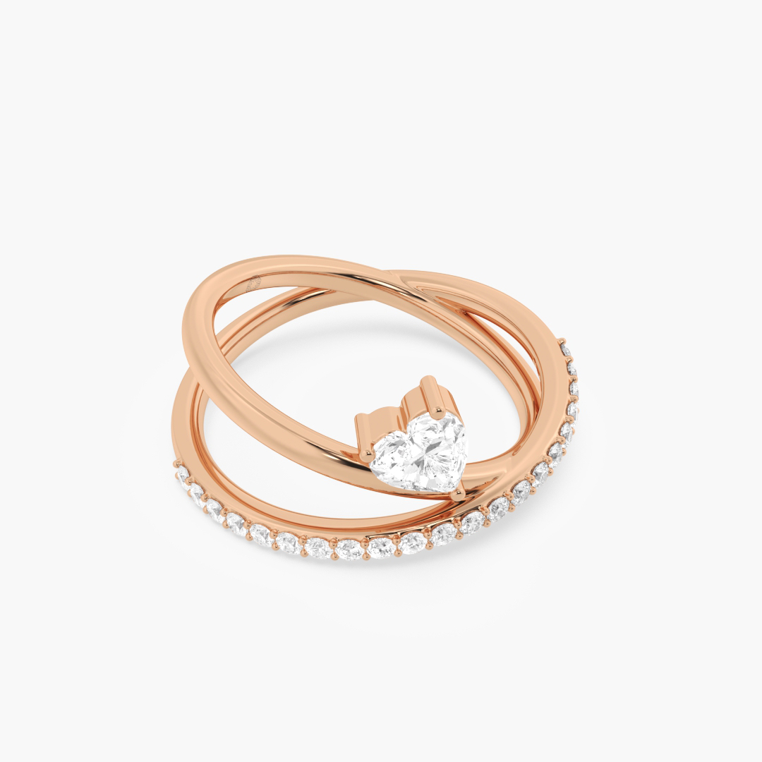 0.70 ctw (22 pcs) F VS1 Lab Grown Heart and Round Cut Diamond Crossover Fashion Ring in 18K Rose Gold