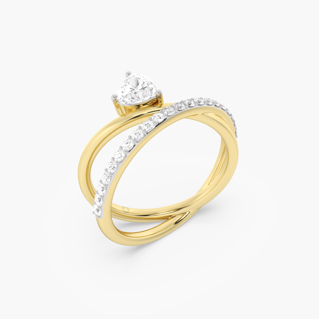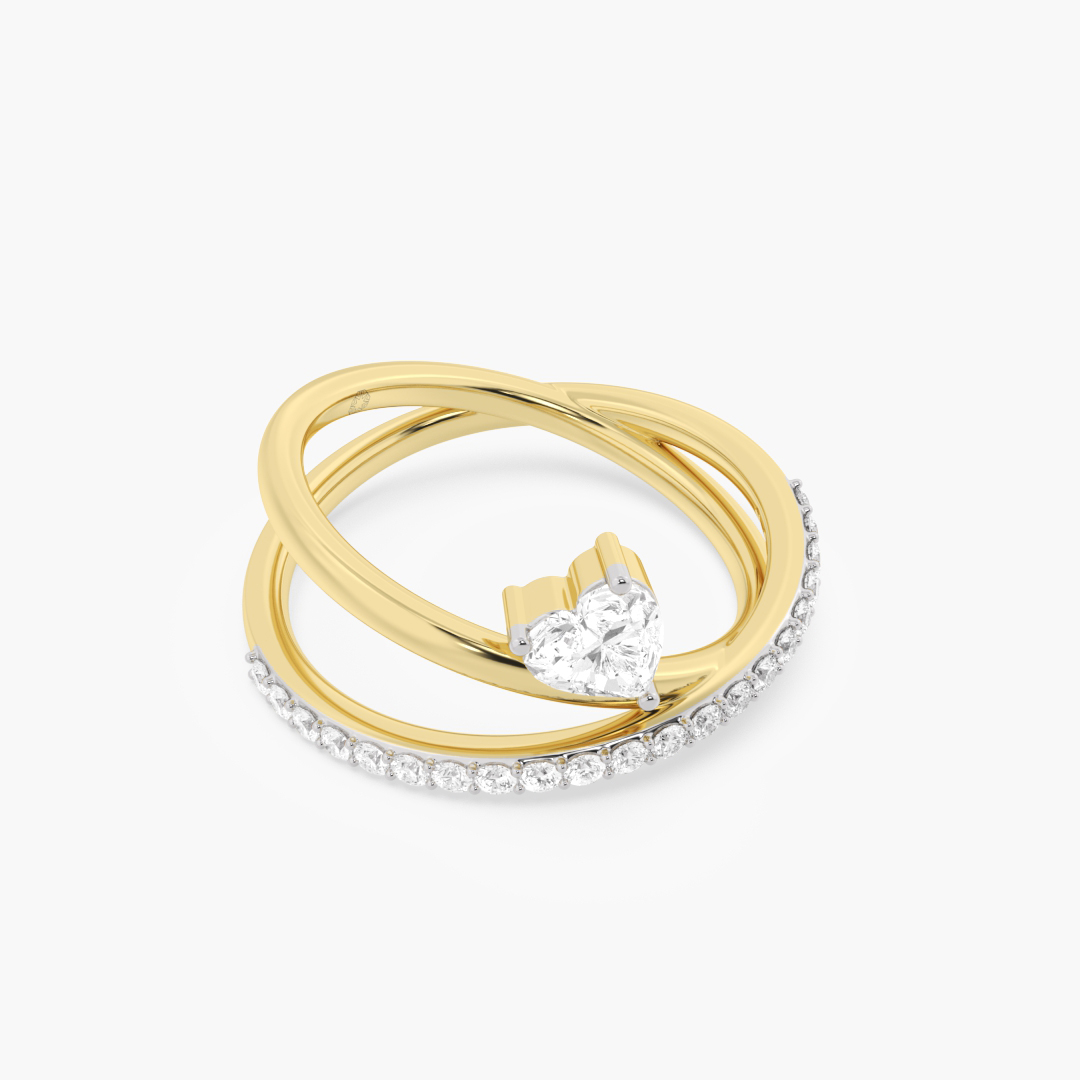 0.70 ctw (22 pcs) F VS1 Lab Grown Heart and Round Cut Diamond Crossover Fashion Ring in 18K Yellow Gold