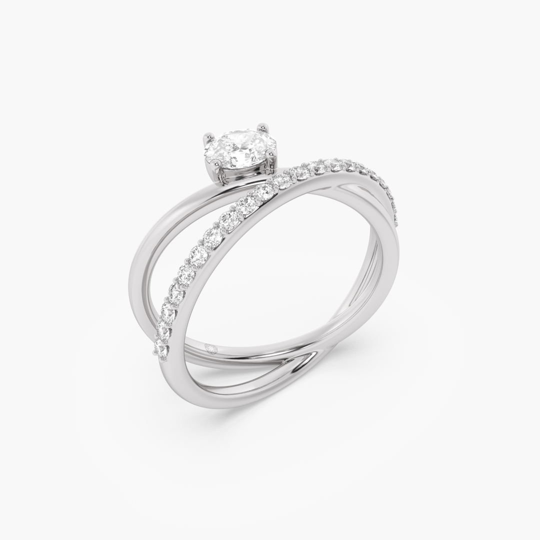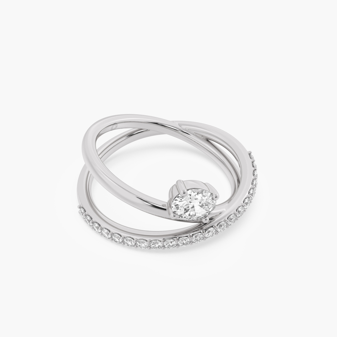 0.60 ctw (22 pcs) F VS1 Lab Grown Oval and Round Cut Diamond Crossover Fashion Ring in 14K White Gold
