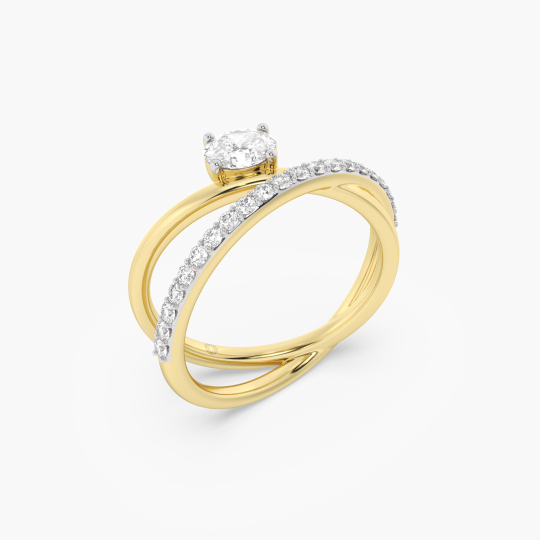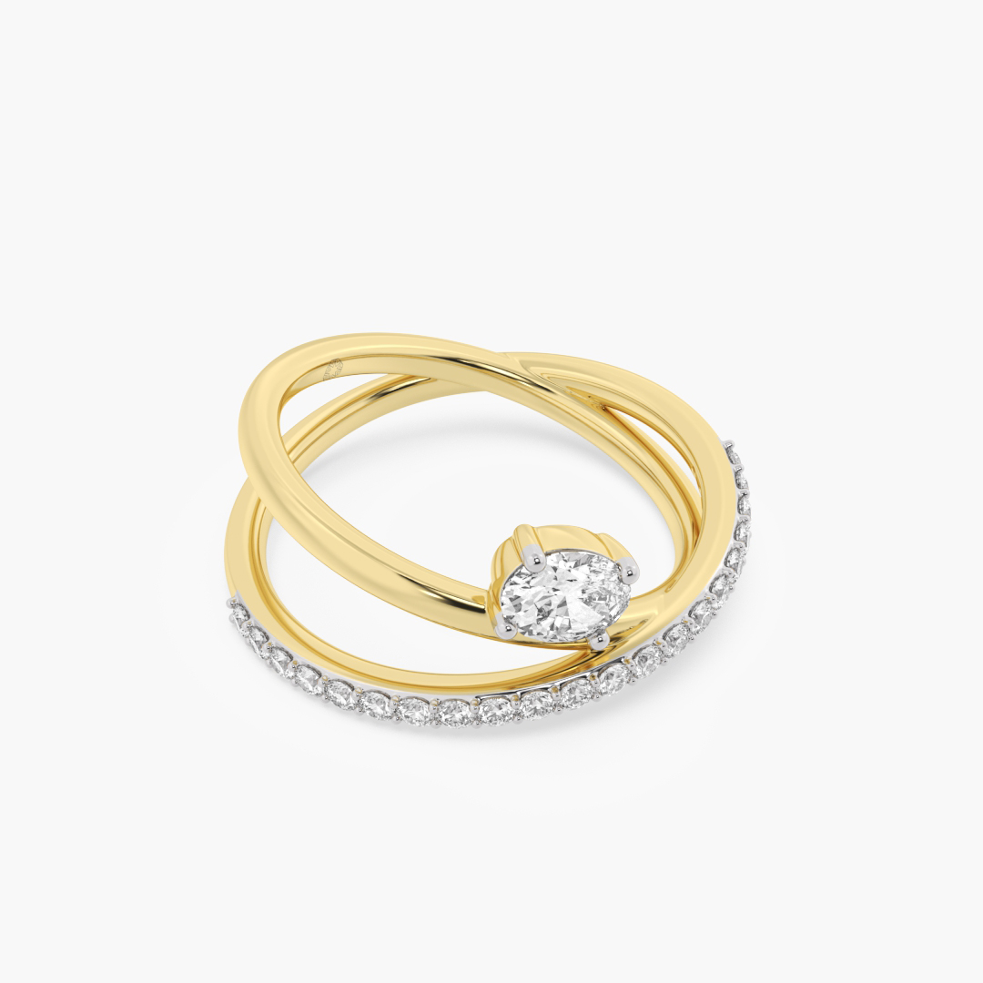 0.60 ctw (22 pcs) F VS1 Lab Grown Oval and Round Cut Diamond Crossover Fashion Ring in 18K Yellow Gold