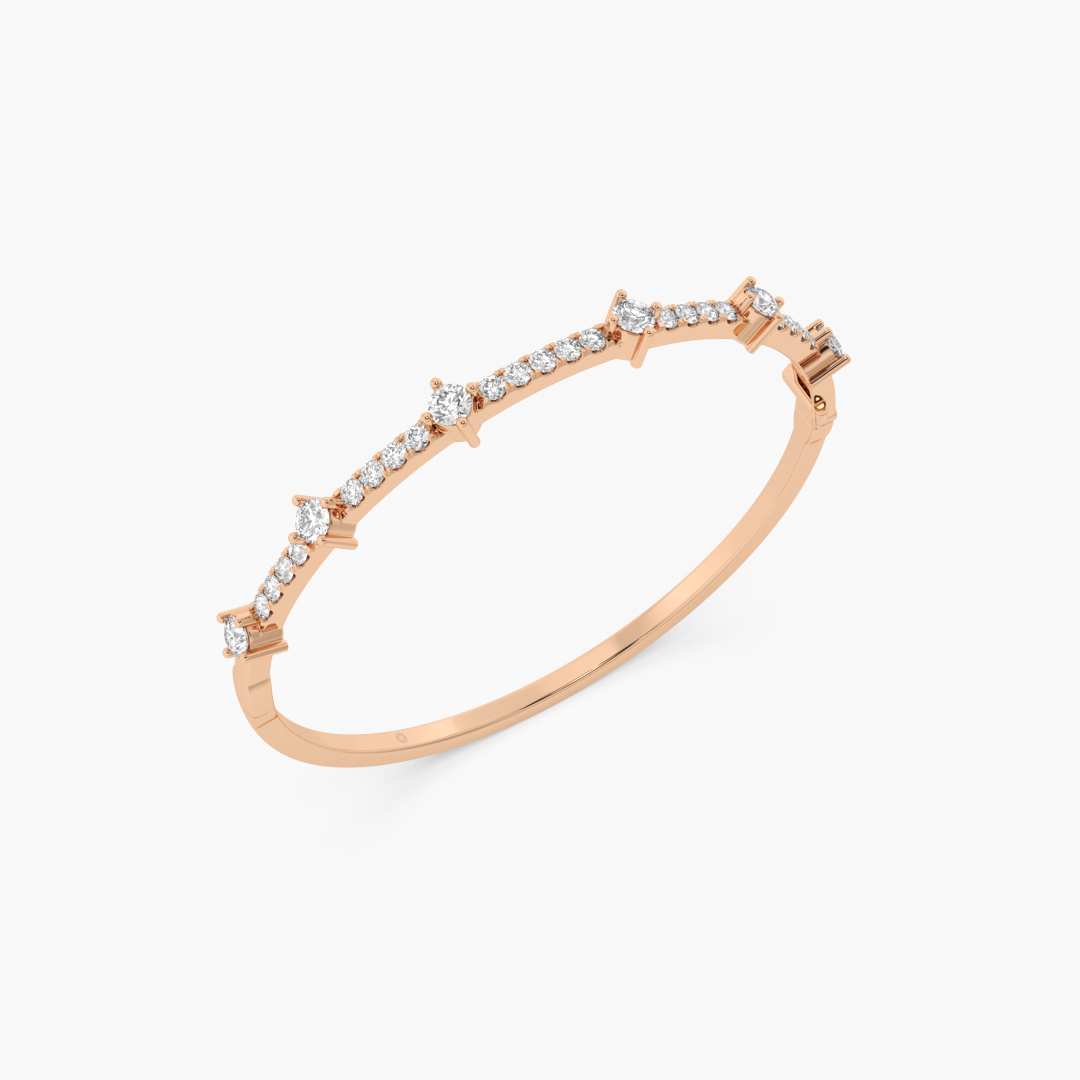 2.10 ctw (28 pcs) F VS1 Lab Grown Round Cut Diamond Solid Openable Bangle in 18K Rose Gold