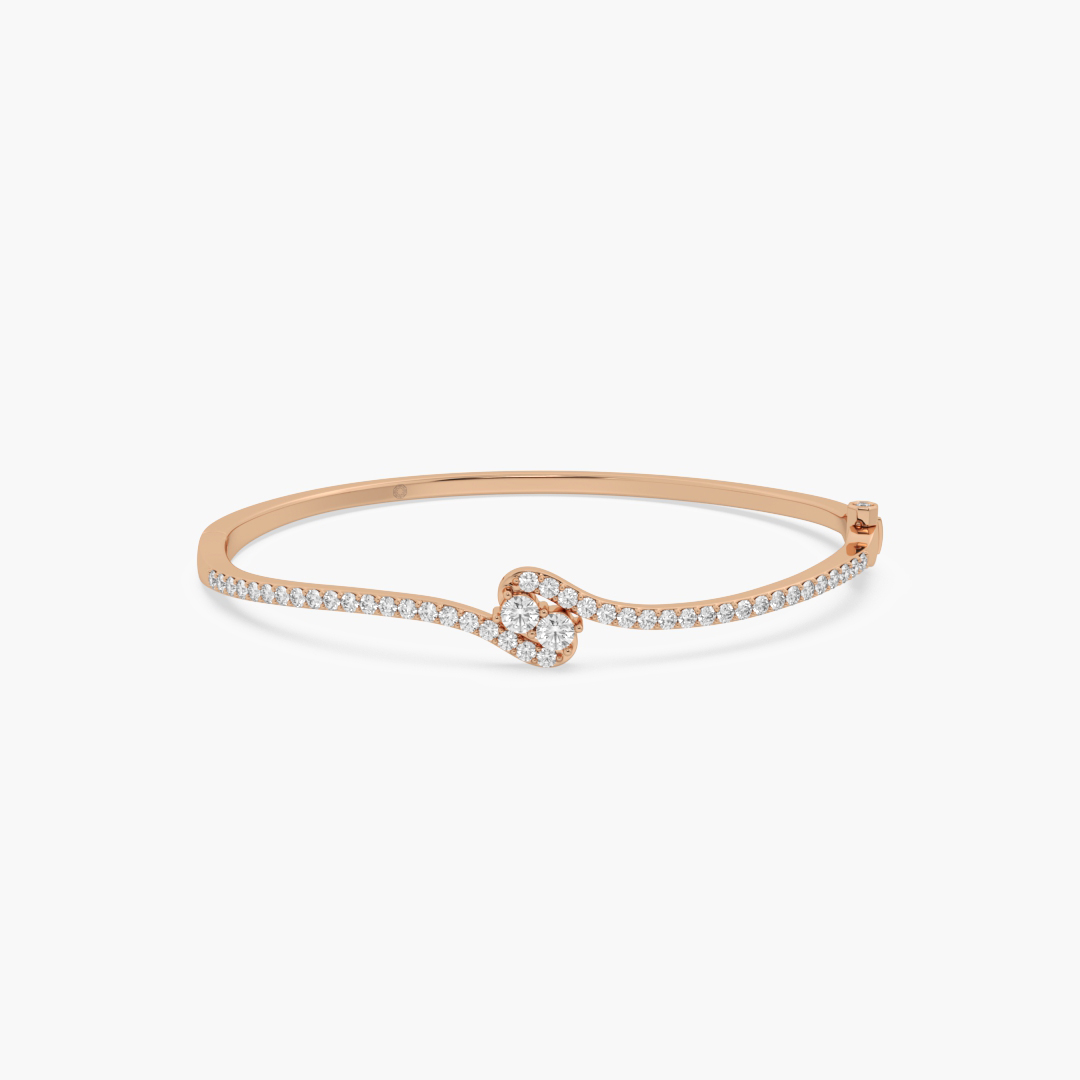 1.50 ctw (74 pcs) F VS1 Lab Grown Round Cut Diamond Spring Bangle in 18k Rose Gold with Ashth Cut Diamond insert