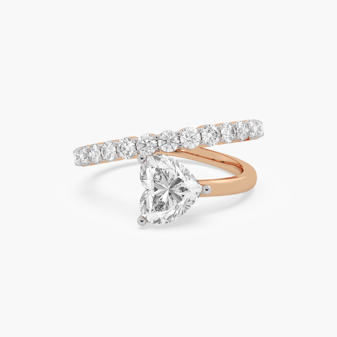 1.45 ctw (104 pcs) F VS1 Lab Grown Oval Cut Two Stone Toi et Moi Diamond Duo Ring in 14k Rose Gold with Round Cut Diamonds