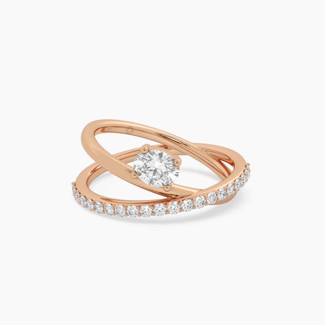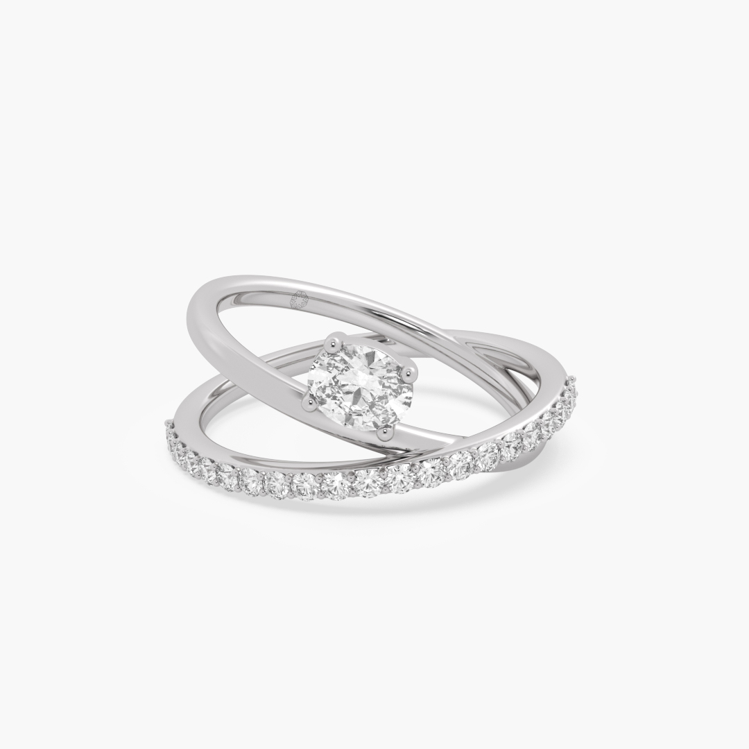 1.45 ctw (104 pcs) F VS1 Lab Grown Oval Cut Two Stone Toi et Moi Diamond Duo Ring in 18k White Gold with Round Cut Diamonds