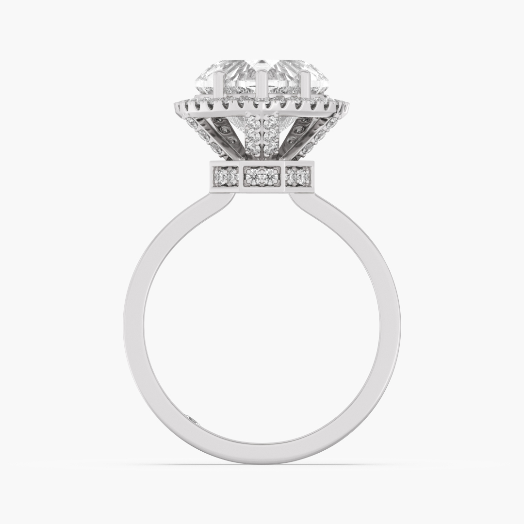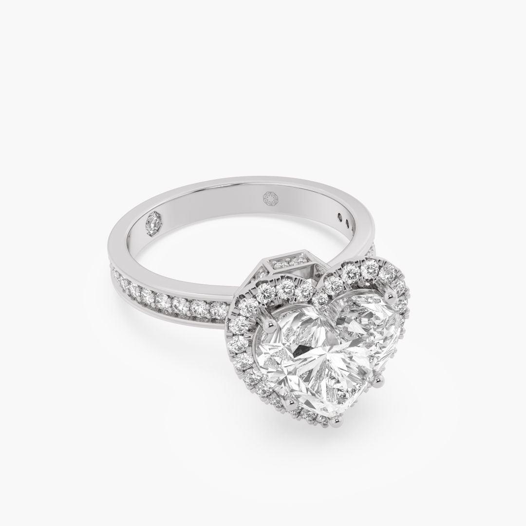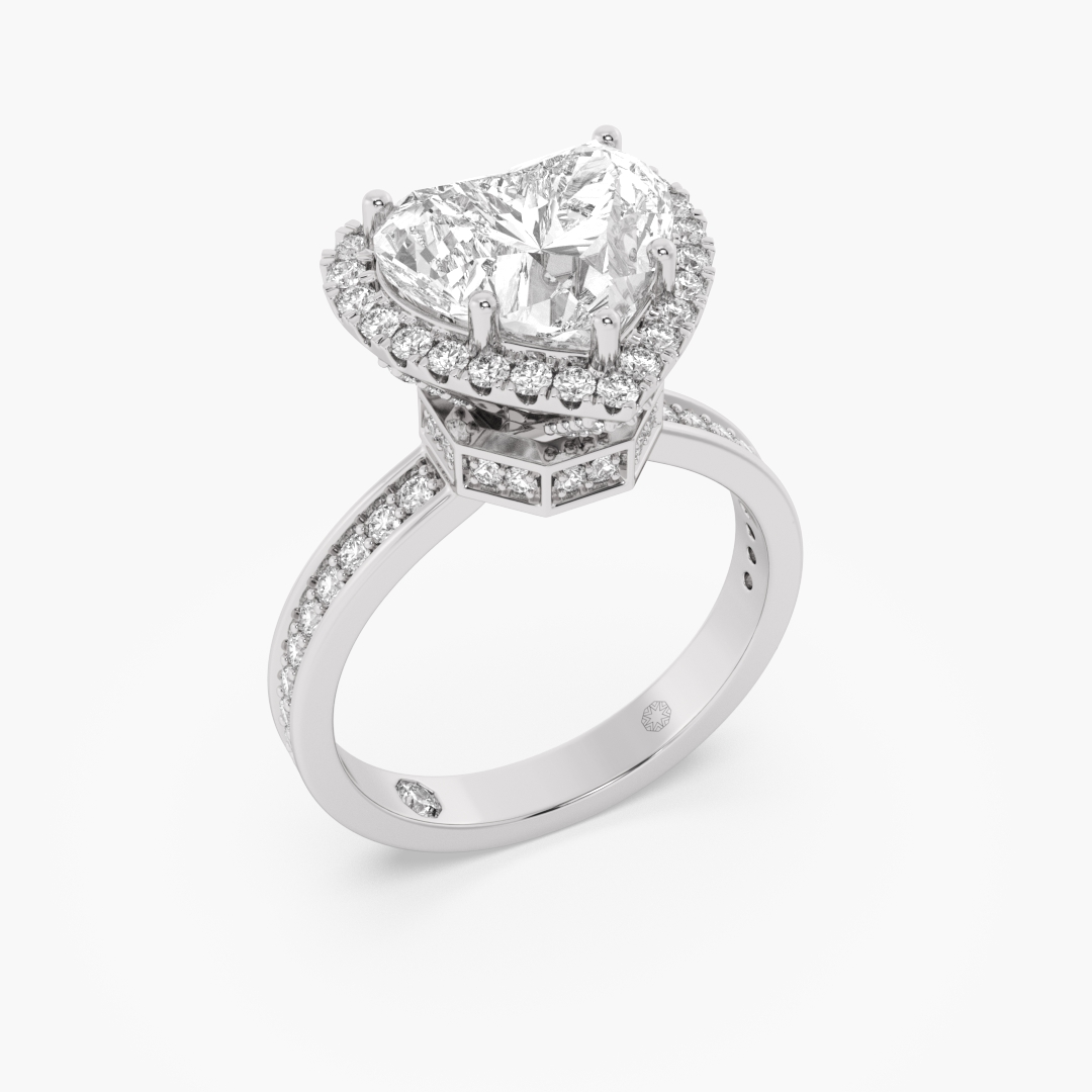 3.60 ctw (80 pcs) F VS1 Heart Solitaire Lab Grown Diamond Engagement Ring with Halo & High-Raised Hidden Halo in 18K White Gold with Ashth Cut Diamond insert