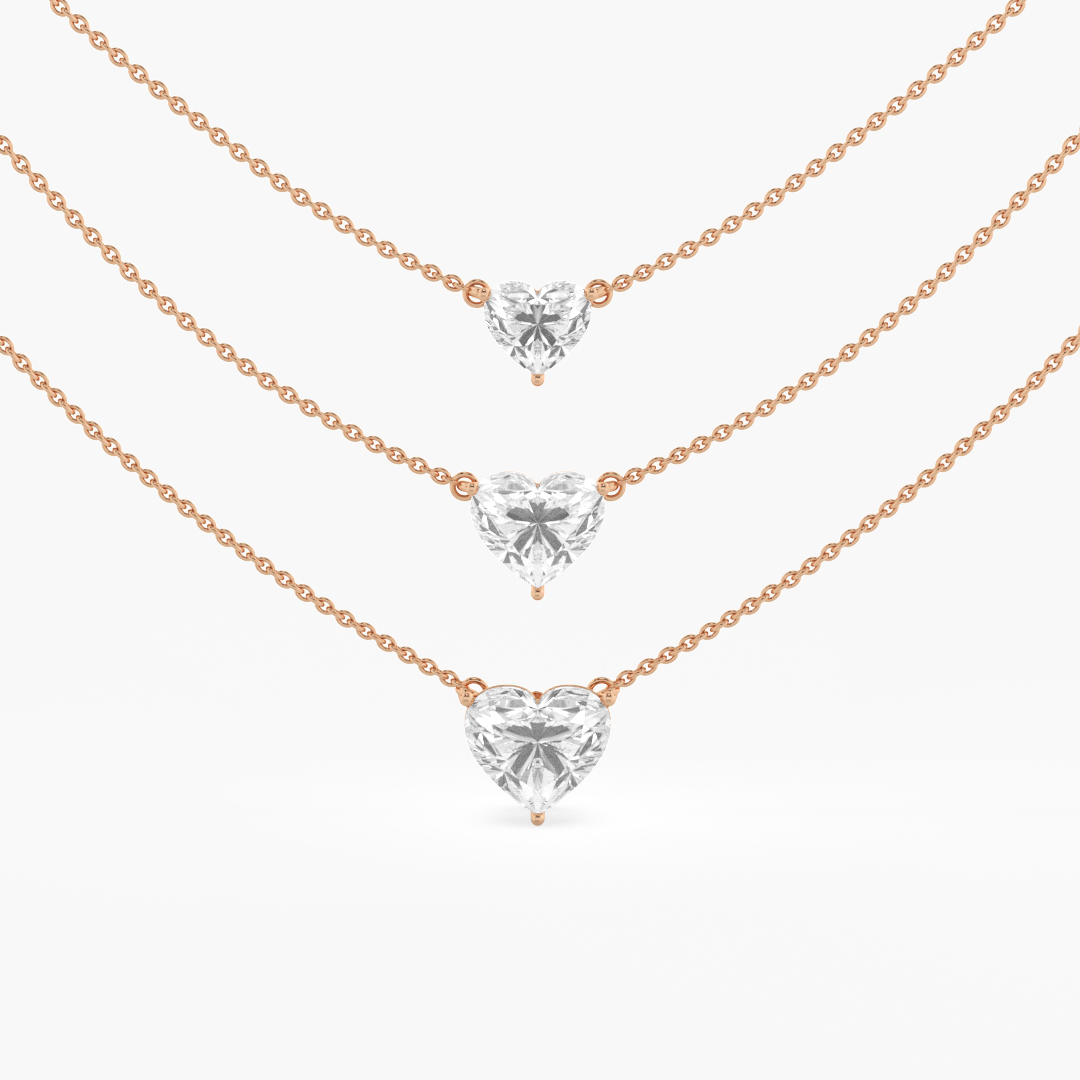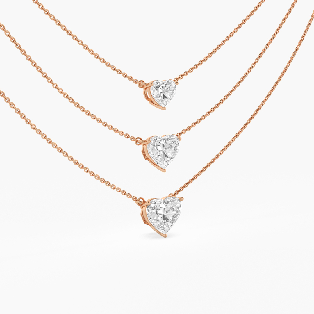 6.40 ctw (9 pcs) F VS1 Lab Grown Heart Cut Diamond Necklace Featuring a Three-Chain Layered Design in 18k Rose Gold