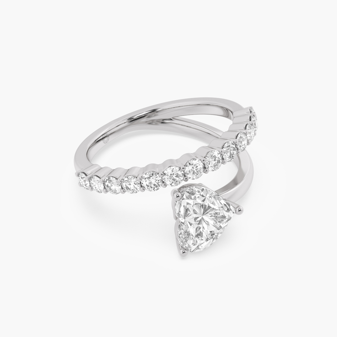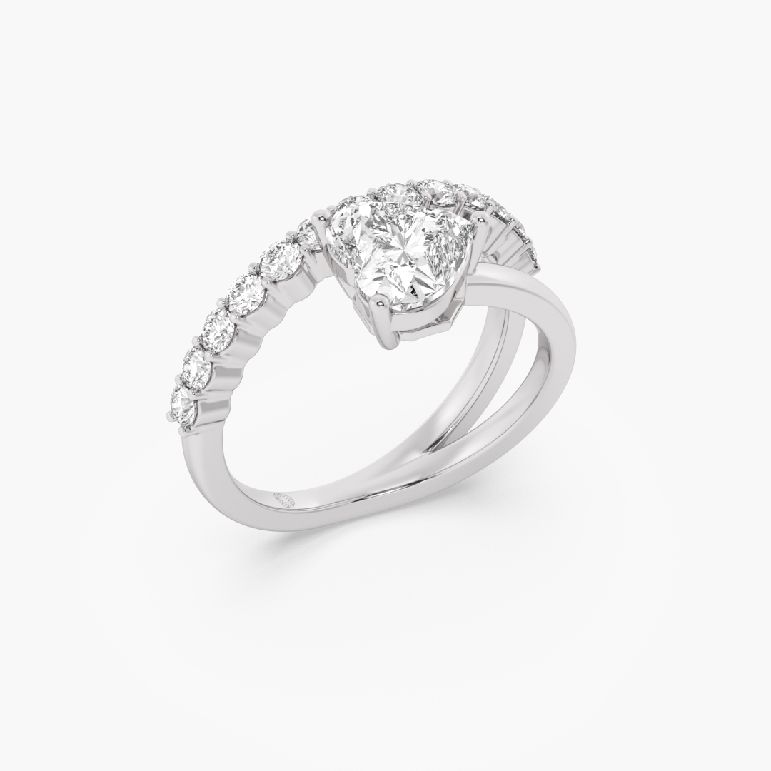 1.50 ctw (14 pcs) F VS1 Lab Grown Heart and Round Cut Bypass Fashion Diamond Ring in 18K White Gold