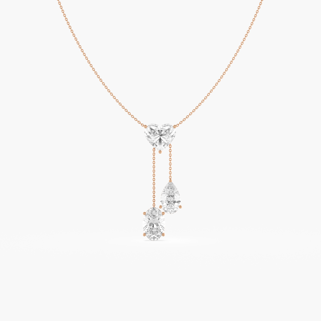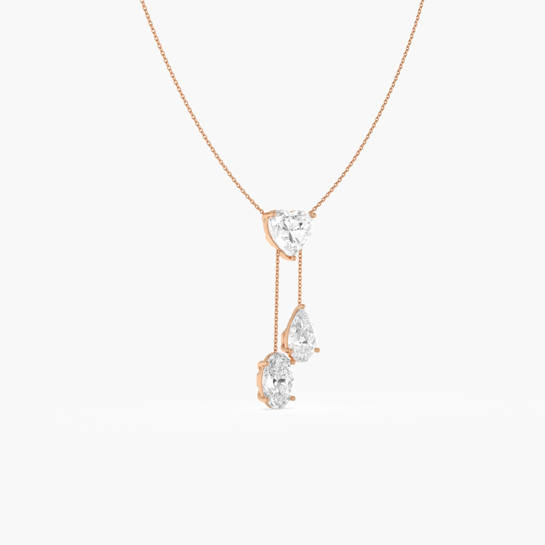 6.60 ctw (3 pcs) F VS1 Lab Grown Pear Heart and Oval Cut Diamond Lariat Chain Necklace in 18K Rose Gold