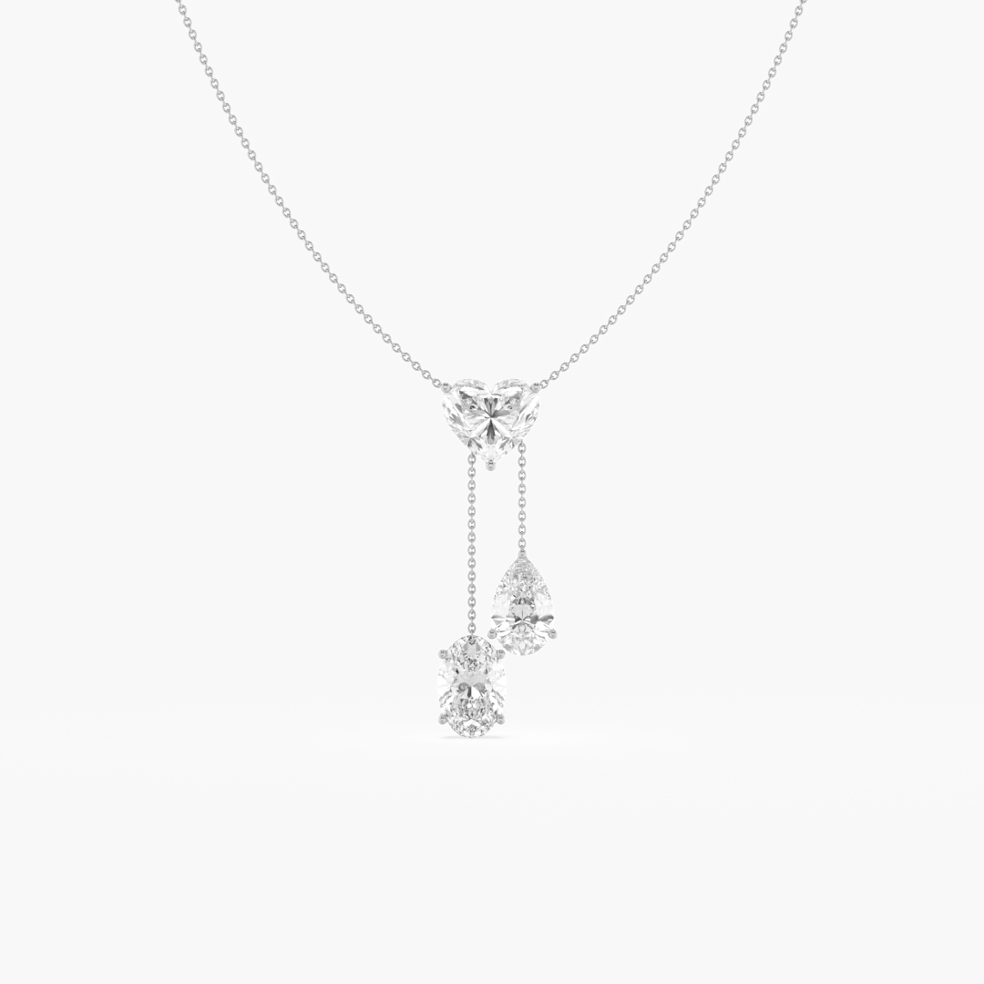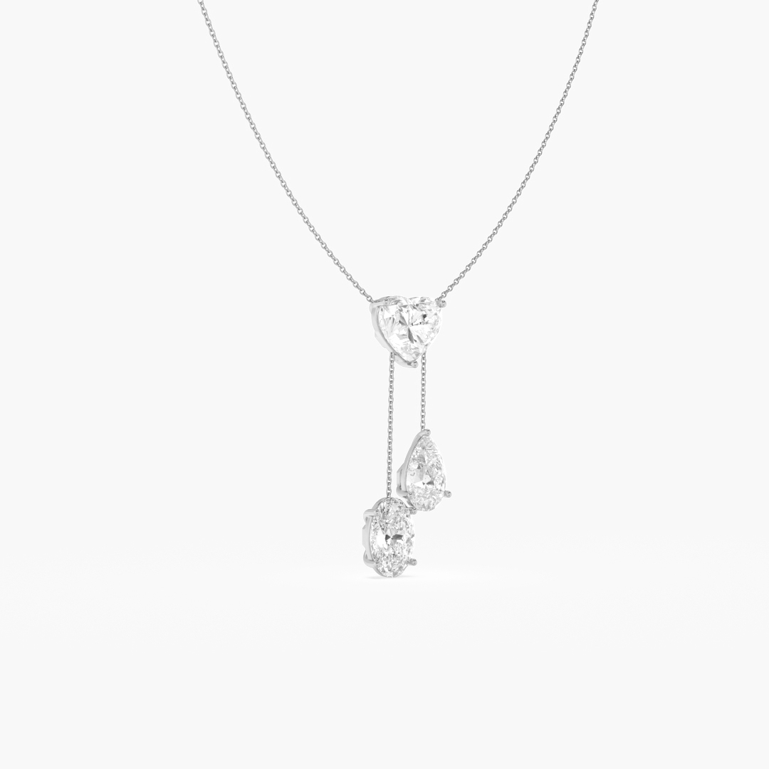 6.60 ctw (3 pcs) F VS1 Lab Grown Pear Heart and Oval Cut Diamond Lariat Chain Necklace in 18K White Gold